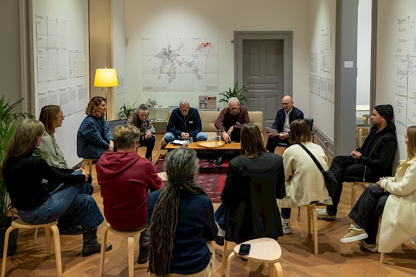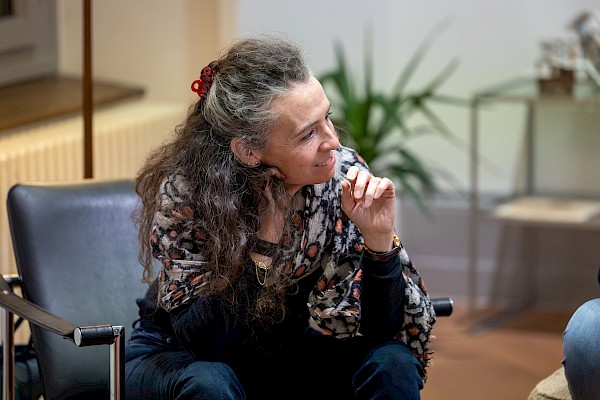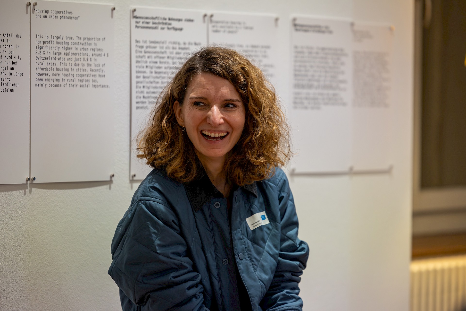 Im Foyer zur Ausstellung «Wohnen fürs Wohnen: Schweizer Wohnbaugenossenschaften als Labor des Zusammenlebens» haben sich Maria Sanchez (Basler Wohngenossenschaft), Vedrana Žalac (Wohngenossenschaft Zimmerfrei), Jörg Vitelli (Präsident des Regionalverbands wohnbaugenossenschaften nordwestschweiz und Genowa Nord-West) und René Brigger (Neue Wohnbaugenossenschaft Basel) zum Podiumsgespräch zusammengefunden. Die vier Vertreterinnen und Vertreter repräsentieren mit ihren Genossenschaften fast ein ganzes Jahrhundert genossenschaftlichen Wohnbau. Gemeinsam mit dem Moderator Franz Horváth blicken sie auf die Anfänge ihrer Wohngenossenschaften zurück und erzählen damit ein Stück Stadtgeschichte.